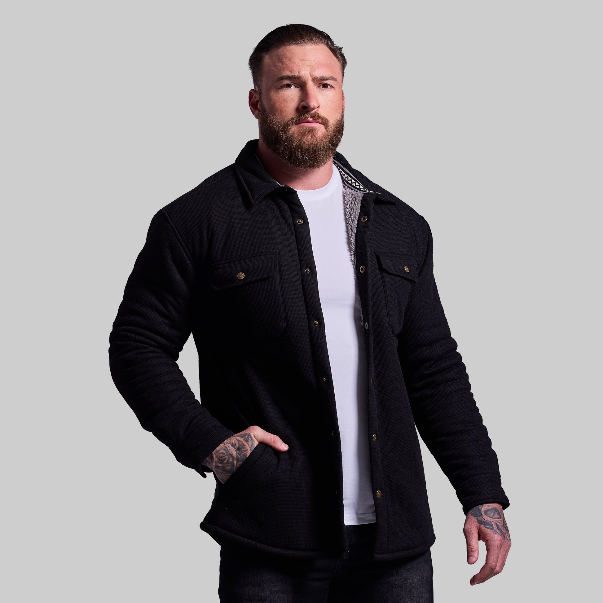 Made from a durable waffle jersey outer and an ultra-soft Sherpa lining, our Aspen Jacket keeps you warm on cold days and nights. With functional features like two snap-closure chest pockets and a full-button front, this jacket prioritizes function just as much as it does comfort. Cut for athletic builds, this jacket won’t restrict your movement or bind at the shoulders when adding layers underneath.