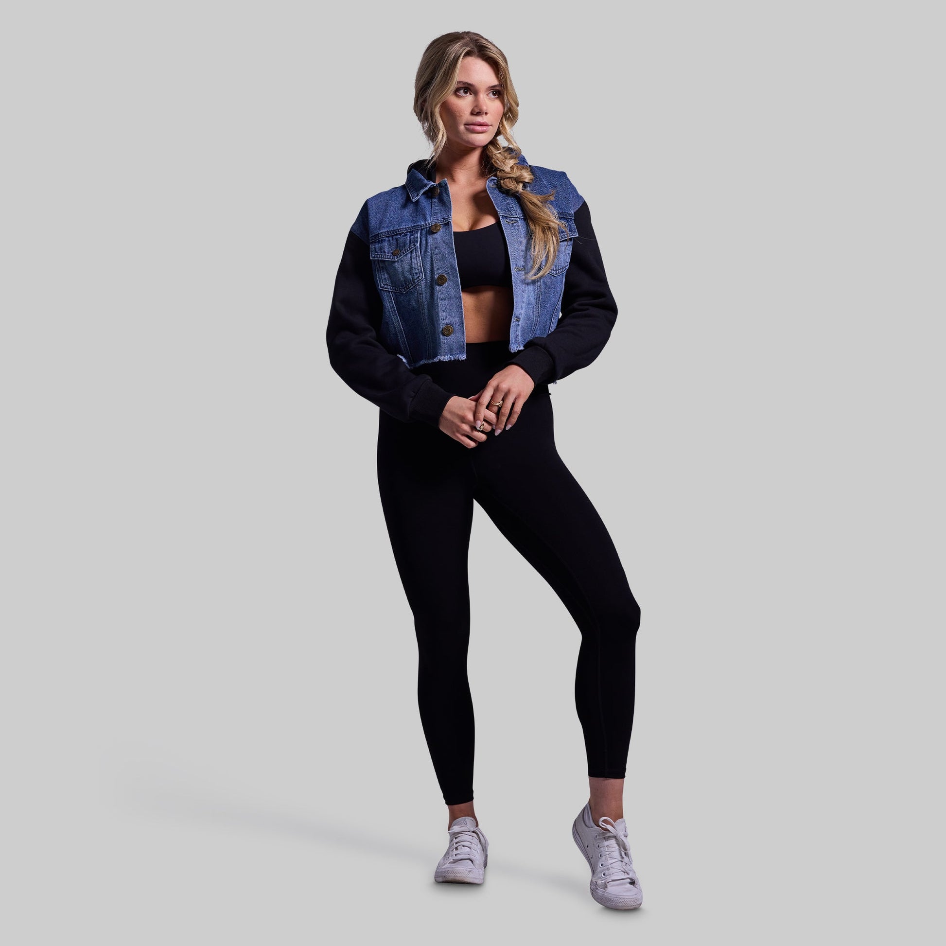 Around here, we believe no wardrobe is complete without a denim jacket. For a more relaxed look, we combined a soft and lightweight denim body with a comfortable sweatshirt hood for added comfort. Complete with a frayed bottom and cropped fit, the Into the Sunset Hooded Jean Jacket is a fresh take on a closet staple.