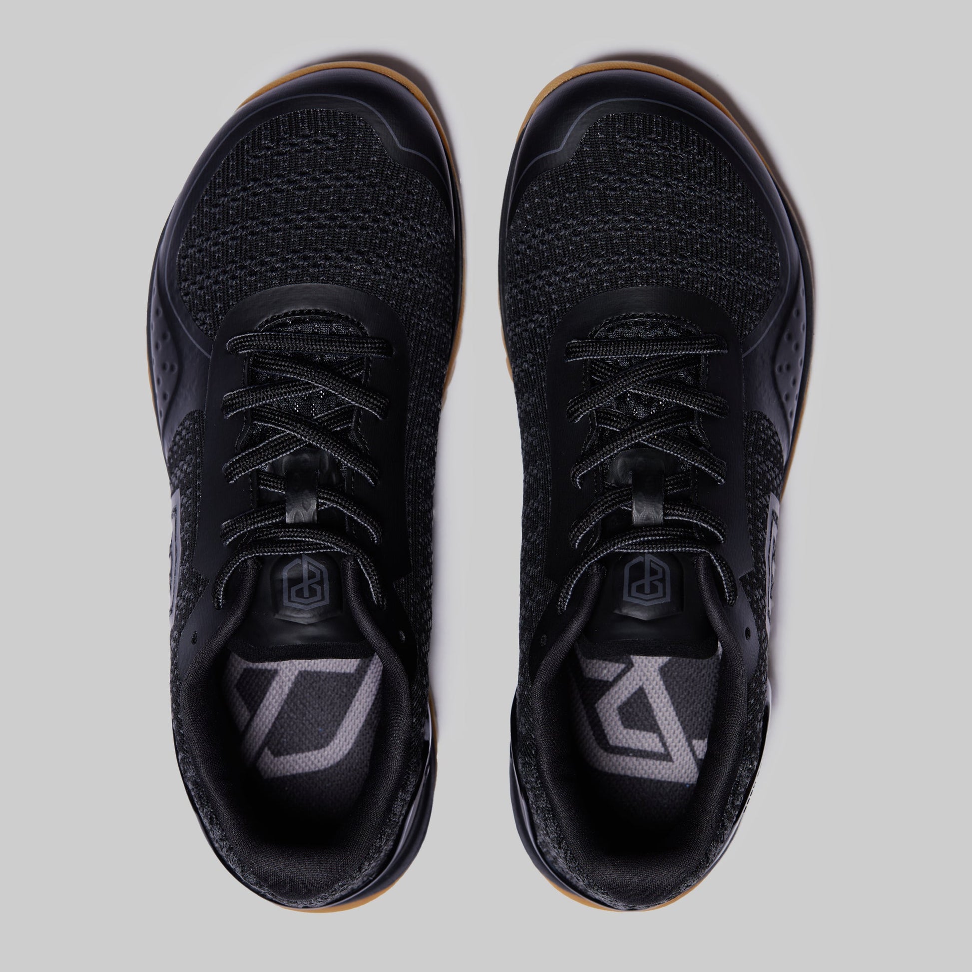 - Dual density molded footbed with 4mm drop. The density at the heel is for heavy lifting stability and the softer area at the forefoot is for cushioning while running and jumping. The total thickness of the shoe at the heel is 21mm and 17mm at the forefoot