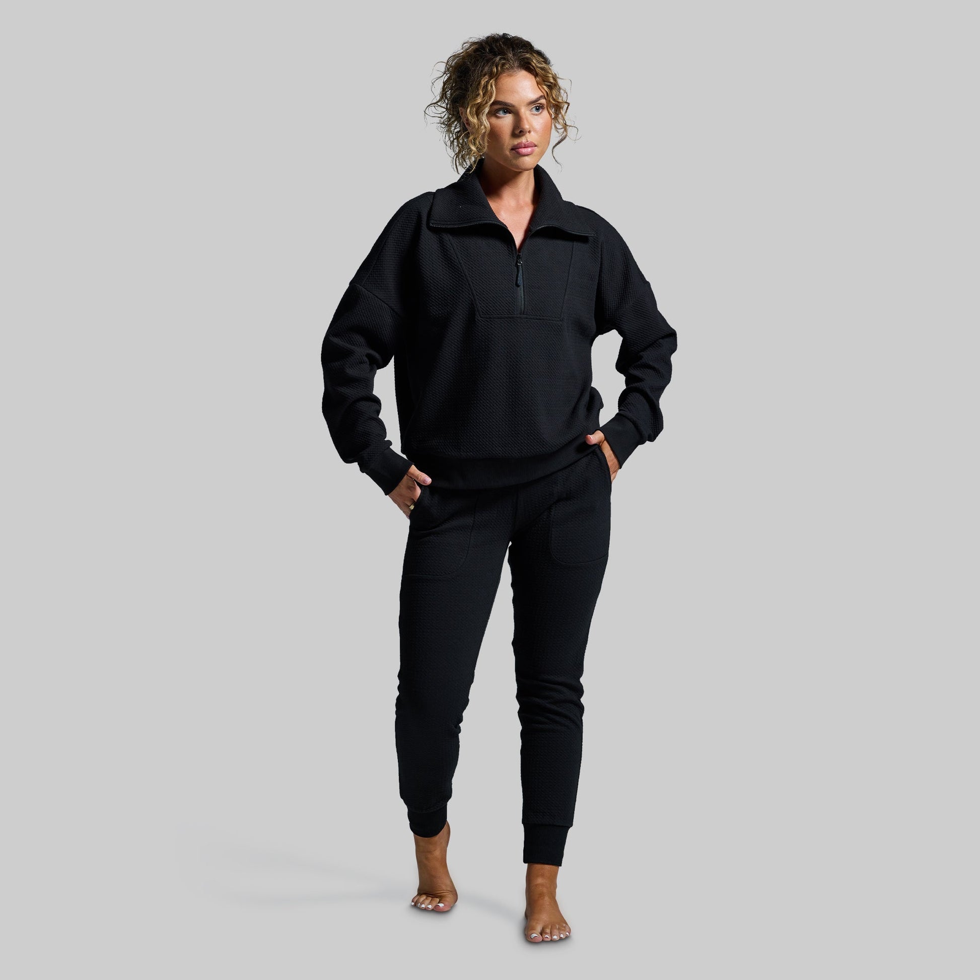 Designed for recovery days and laid-back moments, the Revive Cloud Sweatshirt wraps you in cloud-like comfort with its soft, textured fabric and medium-weight feel. Features a high neck and 1/4 zip front for ultimate versatility and warmth. Pull it on, zip it up, and let recovery mode begin.